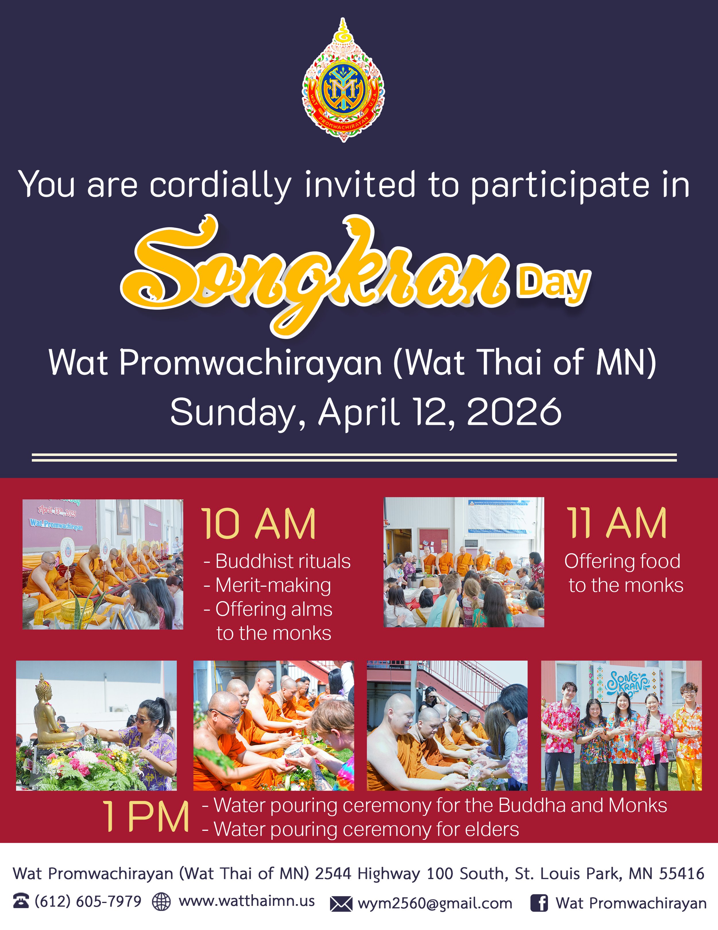 📍 Location: Wat Promwachirayan (Wat Thai of MN) 2544 Highway 100 S, St. Louis Park, MN